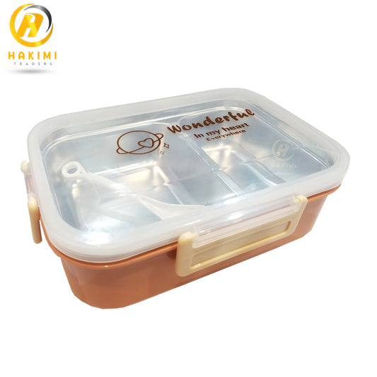 Portable Rectangle Lunch Box with additional Steel Shelf and Spoon
