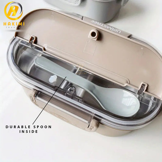 Portable Lunch Box/ Bento Box with additional Steel Shelf and Spoon