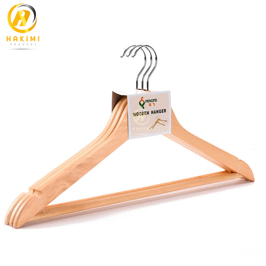 Pack of 3- Wooden Cloth Hangers with anti-slip Pant Hanging Bar and 360 Rotating Neck