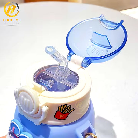 Cute Cartoon Style Water Bottle with Straw